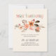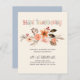 Flores de aquarela modernas e divertidas aparecem neste convite de casamento Feliz Ação de Graças. Azul e cor de laranja no outono.