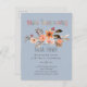 Flores de aquarela modernas e divertidas aparecem neste convite de casamento Feliz Ação de Graças. Azul e cor de laranja no outono.