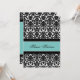 Personalizar 16º Convites de aniversário em elegante cor damasco floral clássica preto e azul-turquesa. Adicione seu nome e detalhes da festa para um convite de aniversário 16 exclusivo e na moda doce.