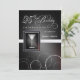 Convites de celebração de 25 de aniversário contemporâneos e formais — Preto com roteiro de prata e monograma. Personalize o nome, a data e os detalhes desta ocasião especial e honrada. © Teri Francis. Correspondência de correio e cartões de agradecimento disponíveis.