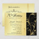 Convites de aniversário 70 — Dourados e Pretos com script formal e monograma pessoal — Personalize o nome, a data e os detalhes desta feliz ocasião. **NOTA: Dimensionado para cartões de convite 5x7. Outros tamanhos disponíveis. Correspondência de correio e cartões de agradecimento disponíveis.