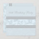 Convites de aniversário 90 personalizados em azul elegante e padrão floral de cinza. Adicione seu nome e detalhes da festa para um convite de aniversário exclusivo e na moda.