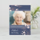 Convites personalizados de fotos de Festa de aniversário 90 em azul-marinho escuro elegante e moderno, cor-de-rosa-coral e branco com delicado padrão floral japonês. Personalize esses convites com sua própria foto e texto para criar um convite de celebração de aniversário verdadeiramente único.