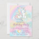 Convites de aniversário de unicórnio com adorável unicórnio em um belo fundo de arco-íris pastel. Estes convites de aniversário de unicórnio são facilmente personalizados para o seu evento, bastando adicionar os seus detalhes. Você também pode mover o coração e as linhas conforme necessário.