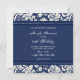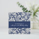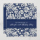 Personalizar 60º Convites de aniversário em azul elegante e escuro marinho e creme de cor damasco floral clássica branca. Adicione seu nome e detalhes da festa para um convite de aniversário exclusivo e na moda 60º.