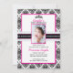 Black and White Damask Princess Photo Birthday Invitations 5X7 com Cor de Destaque Rosa - Criada por Colorful Design Inc. Copyright 2012. Todo texto pode ser modificado.