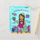 Uma maneira acessível e bonita de convidar amigos para a festa de aniversário de uma menina. Um estilo de arte popular desenhado à mão, uma sereia afro-americana ou hispânica caprichosa e seus amigos submarinos, convite de aniversário de menina em cores vivas.