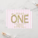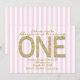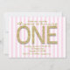 Convites de Aniversário de 1 Ano com Listra Rosa e Purpurina Dourada.