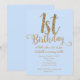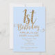 Convites de Aniversário de 1 ano Meninos Azul e Dourado. Personalize para qualquer evento.