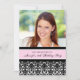 Convites de aniversário de 20 de fotografias personalizadas em cor damasco floral clássica, elegante e bonito, cor-de-rosa, preto e branco. Adicione seu nome, foto e detalhes da festa para um convite de aniversário 20 exclusivo e na moda.