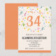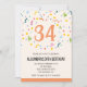 Convites de aniversário de 34 anos simples Confetti Modernos caligrafia tipografia marco clássico elegante colorido feminino