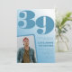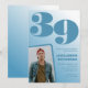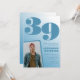 convites de aniversário de 39 anos para ele com gradiente azul e foto retrô