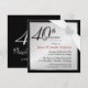 Convites de Aniversário de 40 Anos em Prata e Preto Elegantes com caligrafia de roteiro romântico formal e design pessoal -- Personalize o nome, data e detalhes para essa ocasião feliz. **NOTA: Tamanho para cartões de convite QUADRADOS. Selos, envelopes e cartões de agradecimento correspondentes disponíveis.