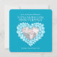 convites gráficos de aniversário de casamento de topázio azul. Lindos efeitos de pedras de topázio azul em gráficos impressos em forma de coração para convites de aniversário de 4 anos de casamento. Personalize com os detalhes da sua festa de aniversário de 4 anos de casamento e foto. O aniversário de 4 anos é associado ao topázio azul e o coração simboliza o amor. Gráficos e design por Sarah Trett para www.mylittleeden.com