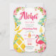 Convite de aniversário divertido com tema de festa tropical. Perfeito para uma festa com tema havaiano, festa de praia, evento de festa de verão. Adicione o marco de aniversário e outros detalhes do convite conforme necessário. Para edições personalizadas e itens correspondentes, entre em contato com a Designer LeahG.