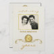 Convites de Aniversário de 50 Anos Personalizados -- Acentos dourados vintage elegantes em fundo de pergaminho marfim com moldura de foto e monograma clássico antigo. Adicione sua própria foto e personalize o nome, data e detalhes para a celebração do seu aniversário especial. Envelopes, selos e cartões de agradecimento correspondentes disponíveis. **NOTA: Dimensionado para cartões de convite 5x7. Outros tamanhos e estilos disponíveis na galeria.