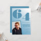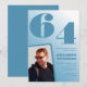 Convites de aniversário de 64 anos com gradiente azul para ele com foto retrô