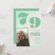Convites de aniversário de 79 anos com gradiente verde para ele com foto retrô