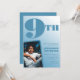 Convites de aniversário de 9 anos com gradiente azul Foto menino