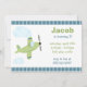 Um adorável convite de aniversário de avião verde e azul. Personalize facilmente as suas informações! Cada convite simples vem com um envelope branco.