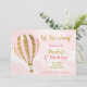 Suba, sobe e desaparece com este convite de aniversário de balão de ar quente rosa e ouro. O balão de ar quente é um ouro brilhante.