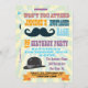 O bigode e o bigode divertidos convidam a festa de aniversário com bigode, chapéu de passarinho e poster de rajada de sol como fundo antiquado desbotado com fontes arrojadas de graffito. Excelente para qualquer idade ou sexo. Altere o texto "festa de aniversário" para qualquer tipo de pessoa que você queira, como um solteiro ou uma festa de solteira. Ilustração desenhada à mão por McBooboo. Por favor, entre em contato comigo em qualquer pergunta, mudança ou problema!