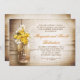 Fundo de madeira rústico romântico e jarra de pedreiro com flores amarelas e brancas, festa de aniversário de casamento ou convites para jantar de aniversário de casamento. Sugiro um papel Linen para este design.