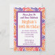 Cor-de-rosa roxa e círculo cor-de-laranja Convite à Festa de aniversario de meninas de padrões com padrões circulares bonito e coloridas no fundo e no verso. Adicione os detalhes da sua festa à parte traseira desta modelo de festa de aniversário lateral. Convidado para excelente para raparigas de todas as idades, incluindo adolescentes e adolescentes. convites de aniversário para raparigas, convites para aniversário de raparigas, convites para aniversários roxos, convites de aniversário roxos, convites para aniversário de padrões, convites para aniversários laranja, audível, coloridos