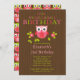 Comece sua festa de aniversário com nossos adoráveis convites de festas aniversários de criança de coruja rosa e vermelha. Nossa doce coruja convida uma coruja bonitinha sentada em um galho de folha verde com flores e é colocada sobre um fundo marrom na moda. O convite para a festa de aniversario de meninas da coruja apresenta um plano de fundo de coruja único. Visite o nosso compro por correspondência. Obrigado, cartões de nota, adesivos de aniversário, obrigado que você tenha adesivos e selos postais. © Petit Tatti