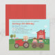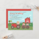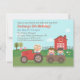 Convide seus filhos e convidados para uma festa de aniversário com tema de fazenda ou quintal e tenha um dia divertido e memorável com atividades rurais! Este convite de aniversário com tema de quintal é simplesmente perfeito! Ele apresenta um trator vermelho puxando uma carroça para que as crianças possam ter um passeio de feno! Um celeiro ao fundo com vários animais como porcos, galo e pintinhos! Um tema neutro que é adequado tanto para meninos quanto para meninas! Personalize facilmente com os detalhes da sua festa!