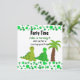 Faça as crianças rugirem com este convite de festas de dinossauro fofo. Dois dinossauros verdes ao lado de uma palmeira. Um fundo verde divertido. Personalize com todas as informações de sua parte.