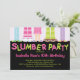 O convite de festas de madeira para meninas bonito apresenta o mais bonito penhasco dos pés de pijama, incluindo pés de pijama com chinelos de coelhinhos, pés de pijama com chinelos de cachorro e pés de pijama com meias. O convite popular para uma festa de aniversario de meninas por sono é definido em um plano de fundo preto de tendência com uma fonte rosa quente e verde limão. Disponível no nosso compro em diferentes tamanhos.