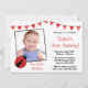 Convites de festas de aniversários bonitos de ladybug. Um design perfeito para uma festa de aniversário de verão para sua garotinha. Design apresenta ladybug com um banner de bunting vermelho e branco. Personalizar facilmente para uma festa de aniversário temática de adivinhação para qualquer idade.