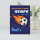 Este convite de festas de aniversário de criança de bola de futebol legal é a adição perfeita a qualquer celebração temática de futebol! Colocada contra um rico fundo azul de marinho (personalizável), uma bola de futebol em greve voa pelo ar e texto em negrito que todos os fãs de futebol se juntem à festa. O texto personalizável permite que você mude o nome do aniversariante ou da garota com facilidade! A parte de trás do convite apresenta uma excelente meta de futebol e gráficos de fãs de aplausos, bem como espaço para personalizar e mudar os detalhes do partido. Os detalhes incluem data, hora, local e lista de desejos, que podem ser todos editados para as necessidades dos compradores de ajustados!