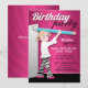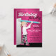 Para crianças! Menina bonitinha com cabelo loiro vestindo camisa branca e calças de impressão zebra, segurando um grande lápis azul desenhando uma linha em um gráfico de altura que é personalizado para mostrar sua idade. Os detalhes da festa são impressos personalizados em fontes brancas e pretas sobre um fundo de impressão zebra rosa-rosa com gradiente fochsia. Estes convites pareceriam uma excelente atualização para o material de papel de gelo metálico, para esse toque especial extra! São aplicáveis descontos em massa.