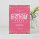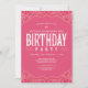 Estes convites de festa de aniversário são cor-de-rosa com um design branco e cor-de-rosa. Personalize o texto para ajustado qualquer idade.