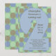 Legal convite para o segundo aniversário, azul e verde, apresenta o grande número dois, com o texto do seu partido personalizado dentro do fundo numérico e pontos multicamados castanhos. Convide amigos e família para a sua festa monumental de marco!