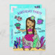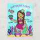 Uma maneira acessível e fofa de convidar amigos para a festa de aniversário de uma menina. Um convite de aniversário de menina em estilo arte popular desenhado à mão com uma sereia afro-americana ou hispânica e seus amigos do fundo do mar em cores vibrantes.