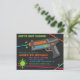 Planeje uma festa de aniversário divertida organizando a festa em um centro de jogos de tiro a laser! Teste a agilidade, a pontaria e as habilidades de trabalho em equipe dos convidados infantis. Este convite tem luzes de laser neon coloridas disparando através do convite decorado com alvo e pistola de brinquedo de tiro a laser. Adequado para crianças e adolescentes, especialmente para meninos de aniversário! Personalize facilmente com os detalhes da sua festa.