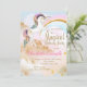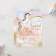 Convites de festa de aniversário de unicórnio com lindo unicórnio pastel rosa roxo e azul turquesa e arco-íris em um belo fundo de nuvem dourada. Este lindo convite de festa de aniversário de unicórnio é facilmente personalizado para o seu evento, basta adicionar os detalhes do seu evento no estilo de fonte de sua escolha. Você também pode alterar a cor do fundo. Este é um design impresso sem brilho real.