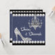 Convites de festa de aniversário de sapatos de salto alto de diamante cintilante elegante, jeans azul e diamantes. Este convite de festa de aniversário de jeans e diamante é perfeito para uma festa de aniversário de sweet sixteen, Quinceanera, festa de aniversário de qualquer idade para meninas e mulheres, ou festa ou evento com tema de jeans e diamante. Adicione seus detalhes na frente e/ou verso simplesmente escolhendo o botão "Personalize!" para começar a adicionar os detalhes do seu evento, estilo de fonte, tamanho e cor da fonte e texto. Por favor, note que todos os desenhos de convite que você encontrará na Zazzle são gráficos impressos sem joias, laços, relevos, rebaixados ou peças ou partes adicionadas.