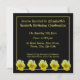 Um elegante design floral com flores amarelas Pansy / Viola contra preto. Este design de convite está configurado para uma 60ª Celebração de Festas de aniversário, mas pode ser facilmente personalizado para qualquer evento/ocasião simplesmente alterando o texto.