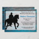 Convite de aniversário russo para cowboy com um fundo de madeira azul e uma silhueta de um cowboy andando a cavalo. O convite de aniversário perfeito para o seu namorado, marido, pai ou qualquer homem especial na sua vida.