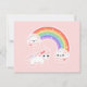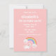 Um super fofo unicórnio rosa pulando no ar com cupcake feliz arco-íris. Personalize a parte de trás com as informações da sua festa.