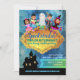 Lindas crianças fazem convites de aniversário com fantasias de halloween e casa assombrada.