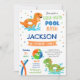 Festa de Piscina do Dinossauro T-rex Convites de Aniversário Três Dinomite Rex