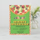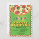 A pizza neste convite de aniversário é carregada de pepperoni, azeitonas e pimentos e tem campos de texto personalizáveis para sua festa.