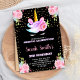 Convites de Aniversário do Rainbow Pink Black Unicorn