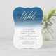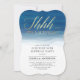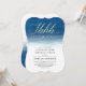 Envie estes convites azuis elegantes e comece a festa surpresa com uma mensagem na moda moderna. Na frente, na elegante caligrafia manuscrita são as palavras "shh... é uma surpresa" cortado digitalmente em folha de ouro. Ao contrário, há curvas finas e delicadas de tons azuis de aquarela. As fontes de serif preto e branco bloqueadas comunicam os detalhes da sua festa surpresa com o máximo de clareza.