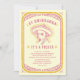 Convites de aniversário Fiesta com um design rosa e laranja com um Chihuahua usando sombrero. Divertido, fofo e personalizado exclusivamente para as necessidades da sua festa de aniversário!